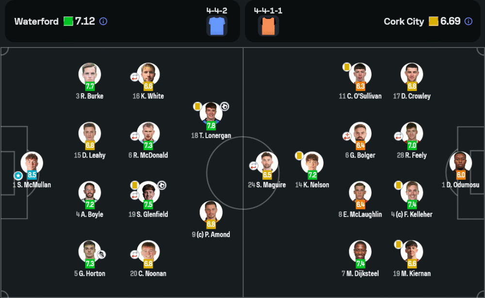 เกมนี้วอเตอร์ฟอร์ดยืนแผน 4-4-2 เน้นเกมริมเส้นและโต้กลับเร็วซึ่งถือว่ามีประสิทธิภาพสูง โดยเฉพาะจังหวะบุกสองข้างที่สร้างโอกาสได้มากและจบสกอร์เฉียบคม ส่วนเกมรับแม้จะโดนบุกใส่หลายครั้งแต่ยืนตำแหน่งได้ดี ขณะที่คอร์กมาในระบบ 4-4-1-1 พยายามครองบอลแต่สปีดเกมช้ากว่าและพลาดง่ายในจังหวะเข้าทำ ทำให้จังหวะสุดท้ายไม่เฉียบคมพอ ซึ่งจากมุม วิเคราะห์บอล ของบ้านกีฬา วอเตอร์ฟอร์ดวันนี้ทำการบ้านมาดี เล่นมีระเบียบ และสมควรเป็นผู้ชนะ