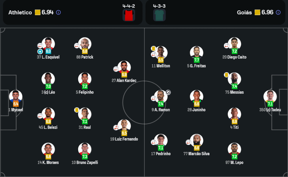 เปลี่ยนตัว: เวลลิงตัน ราโต้ (6.8), มอราส จูเนียร์ (6.6), เซ ฮูโก้ (6.4), ลุยซ์ เฟลิเป้, ฟากุนโด้ บาร์เซโล่