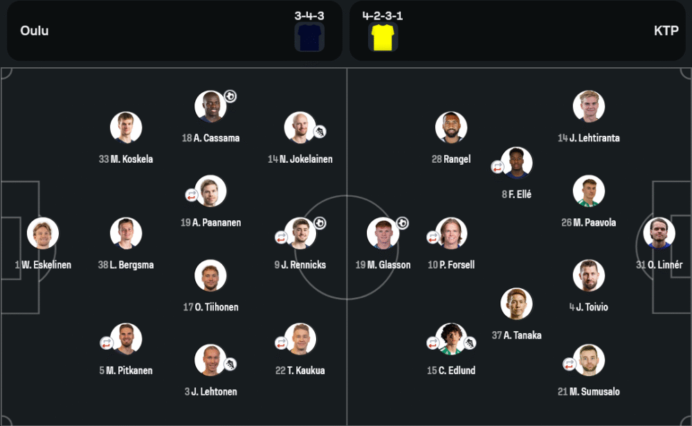 ตัวสำรองสำคัญ: นาธาเนียล ทาห์มบิ (62’), อาโร ทอยโวเนน (77’), จอนี มาเคล่า (78’), อัสซาน เซ็ค (78’)