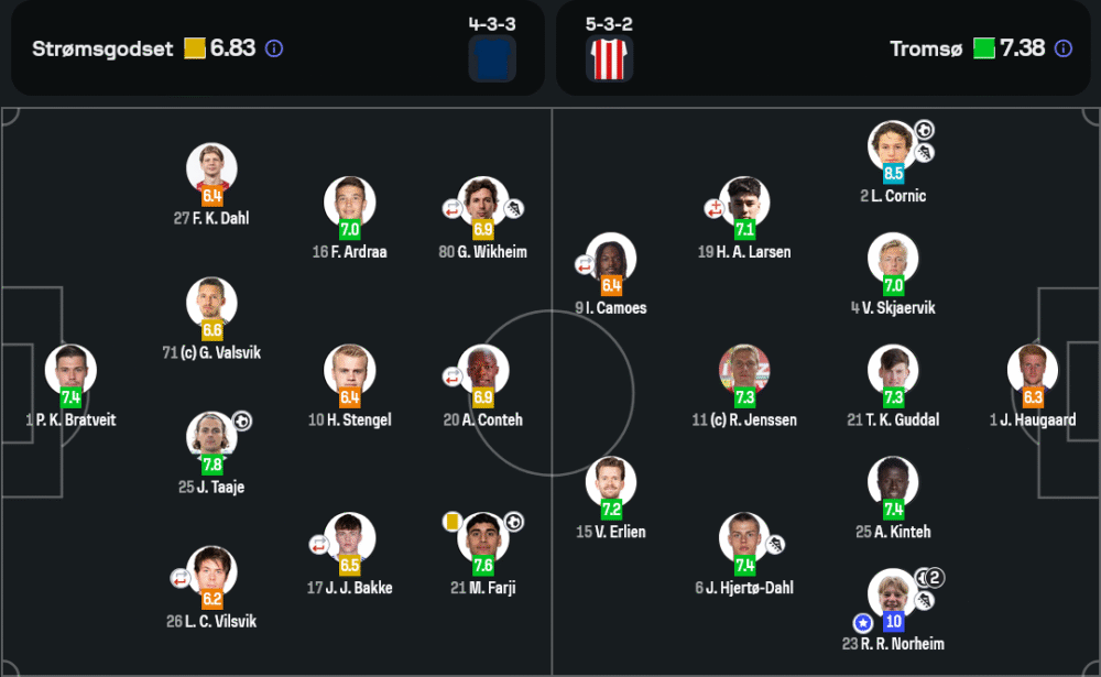 เกมนี้สตรอมก็อดเซ็ทมาในระบบ 4-3-3 เน้นเกมรุกริมเส้นบวกกับลูกกลางอากาศ ส่วนทรอมโซ่จัด 5-3-2 เน้นเกมรับแน่นหนาและสวนกลับเร็ว ช่วงต้นเกมทรอมโซ่ใช้แผนสวนกลับกดเจ้าถิ่นพังเร็วถึงสองประตู ซึ่งเป็นจุดเปลี่ยนสำคัญของแมตช์ ครึ่งหลังสตรอมก็อดเซ็ทปรับรูปแบบบุกเต็มที่ กระหน่ำยิงและครองบอลได้มากขึ้น แต่เกมรับของทรอมโซ่ยังคงนิ่งและจัดการจังหวะโต้กลับได้อันตรายตลอด บ้านกีฬามองว่าในแง่ วิเคราะห์บอล แล้ว เกมรับของทรอมโซ่แม้จะถอยแต่มีวินัยสูง และเมื่อได้โอกาสจบสกอร์ก็เฉียบคมกว่า