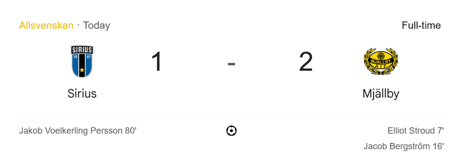ศึก ออลสเวนส์คาน เมื่อคืนที่ผ่านมาเรียกเสียงฮือฮาจากแฟนๆ หลังเกมที่สนามซิริอุส อารีน่า เมื่อ มอลล์บี้ เอไอเอฟ บุกเชือดเจ้าบ้าน ไอเค ซิริอุส แบบสุดมันส์ 2-1 บ้านกีฬา เกาะติดเกมแบบนาทีต่อนาที และพร้อมรายงาน ผลบอลสด ให้แฟนบอลได้ลุ้นทุกจังหวะ ครึ่งแรกมอลล์บี้คมกว่าออกนำ 2 ประตูจาก เอลเลียต สตรูด นาที 7 และ ยาค็อบ เบิร์กสตรอม นาที 16 ทำให้เจ้าถิ่นต้องแก้เกมอย่างหนัก กลับมาครึ่งหลังซิริอุสพยายามครองบอลบุกมากขึ้นและตีไข่แตกได้สำเร็จจาก ยาค็อบ โวลเกร์ลิง เพอร์สสัน นาที 80 แต่ไล่ไม่ทัน จบเกม มอลล์บี้ เอไอเอฟ เฉือนชนะ 2-1