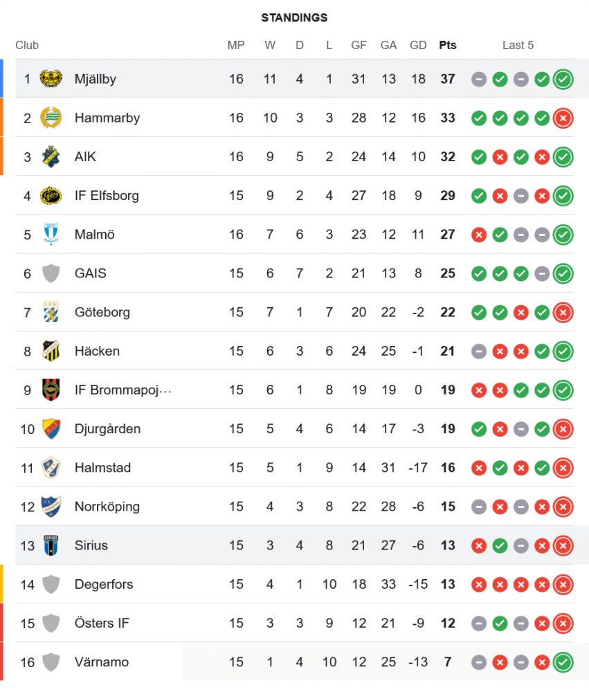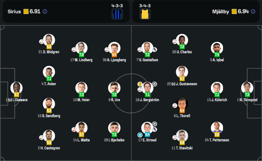 - ตัวสำรองเด่น: ยาค็อบ โวลเกร์ลิง เพอร์สสัน (สำรองลงมายิง 1 ประตู), วิคเตอร์ สเวนส์สัน
