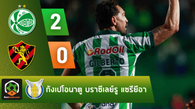 บ้านกีฬา รายงานผล บ้านผลบอล ศึกกังเปโอนาตู บราซีเลย์รู แซรียีอา เมื่อเช้าที่ผ่านมา ยูเวนตูเด้ ปลดล็อกชัยชนะได้อย่างดุดัน เปิดบ้านเชือด สปอร์ต คลับ เรซิเฟ่ พีอี 2-0 จากการเหมาคนเดียวสองประตูของ กิลแบร์โต้ กองหน้าตัวเก่ง พาทีมคว้า 3 แต้มเต็ม ไล่บี้หนีจากอันดับตกชั้นสำเร็จ