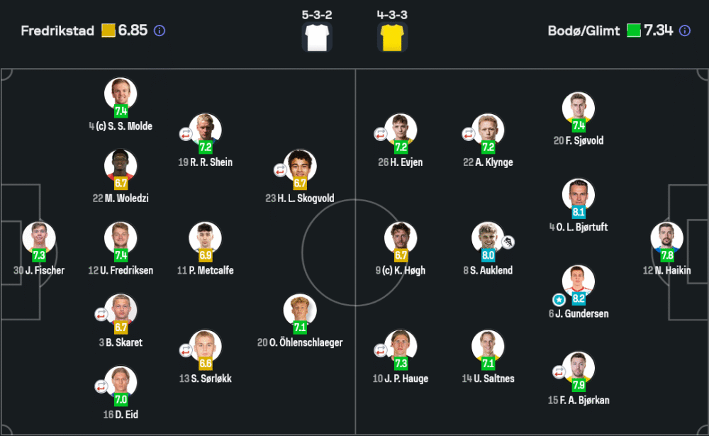 โบโด กลิมท์ มาในแผน 4-3-3 เดินเกมรุกเต็มรูปแบบด้วยการครองบอลสูงถึง 75% และต่อบอลแม่นยำถึง 86% ขณะที่เฟรดริกซ์สตรัดเลือกแพ็กเกมรับในระบบ 5-3-2 แล้วรอสวนกลับเป็นระยะ ในเชิง วิเคราะห์บอล ต้องชมโบโด กลิมท์ ที่ต่อบอลเข้าทำได้หลากหลายและบดคู่แข่งจนเจาะสำเร็จในที่สุด ส่วนเฟรดริกซ์สตรัดแม้จะเสียเปรียบการครองบอลแต่เกมรับยังคงรัดกุม