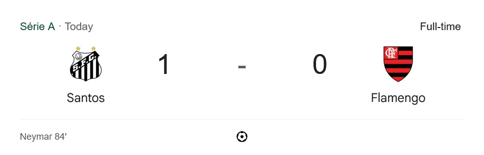 บ้านกีฬา พาเกาะติดศึกเดือด กังเปโอนาตู บราซีเลย์รู แซรียีอา เมื่อเช้านี้ที่เอสตาดิโอ วิลล่า เบลมีโร่ ผล บ้านผลบอล รายงานว่า ซานโตส สร้างเซอร์ไพรส์เฉือนจ่าฝูง ฟลาเมงโก 1-0 จากประตูโทนสุดเฉียบของเนย์มาร์ในนาที 84 ส่งเสียงเฮลั่นสนาม พร้อมเก็บสามแต้มล้ำค่าที่ช่วยหนีโซนท้ายตารางได้สำเร็จ