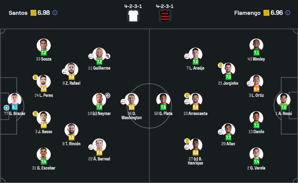 นักเตะโดดเด่นของซานโตสคือเนย์มาร์ที่ทำประตูชัย และบราซังที่โชว์ฟอร์มหนึบ ส่วนฝั่งฟลาเมงโกแม้จะพยายามแล้วแต่ขาดความเฉียบคมในพื้นที่สุดท้าย