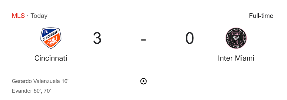 ชัยชนะนัดนี้ช่วยให้ซินซินเนติกลับมามั่นใจหลังแพ้โคลัมบัสในเกมก่อนหน้า ส่วนอินเตอร์ ไมอามีต้องชะงักสถิติชนะรวด 3 นัดไว้เพียงเท่านั้น และเสียโอกาสไต่อันดับขึ้นไป