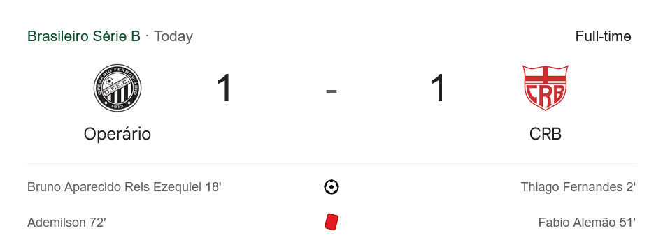 บ้านผลบอล สรุปหลังเกม โอเปราริโอ พีอาร์ เปิดบ้านเจ๊าดุเดือด ซีอาร์บี แม็คซิโอ 1-1 ศึกคัมปิโอนาโต บราซิเลียโร ซีรีบี