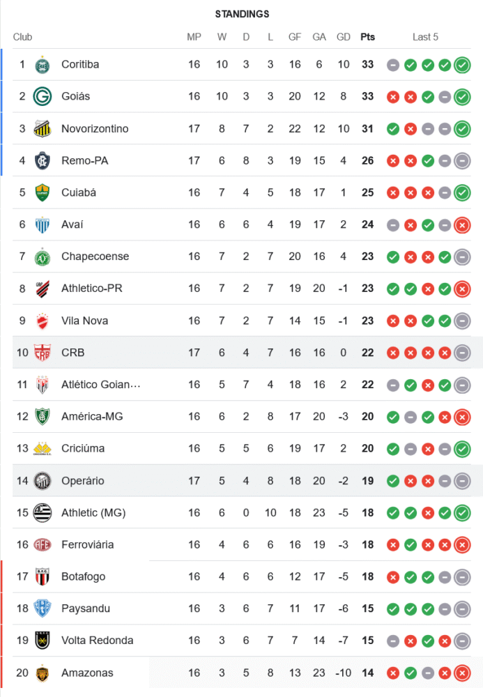 โอเปราริโอยังรั้งอันดับ 14 ของตาราง มี 19 คะแนนจาก 17 นัด ขยับหนีโซนตกชั้นเพียงเล็กน้อย ส่วนซีอาร์บี อยู่ที่ 10 มี 22 คะแนน ยังพอมีลุ้นพื้นที่เลื่อนชั้นแต่ต้องเร่งเครื่องต่อไป
