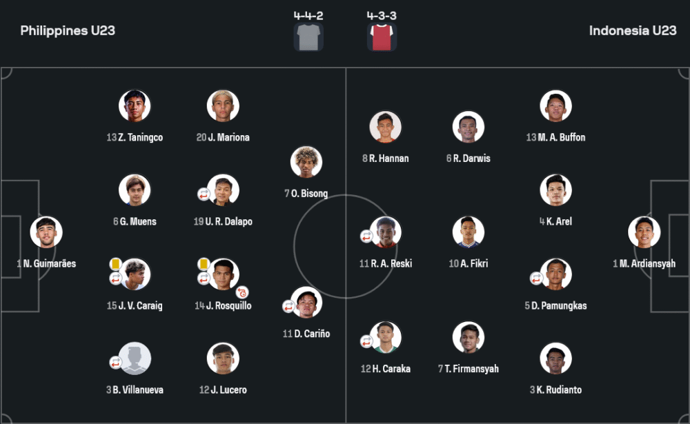 🔁 46’ ฟิลิปปินส์เปลี่ยน โนอาห์ เลดเดลล์ และ จาเร็ด เปญา ลงสนาม