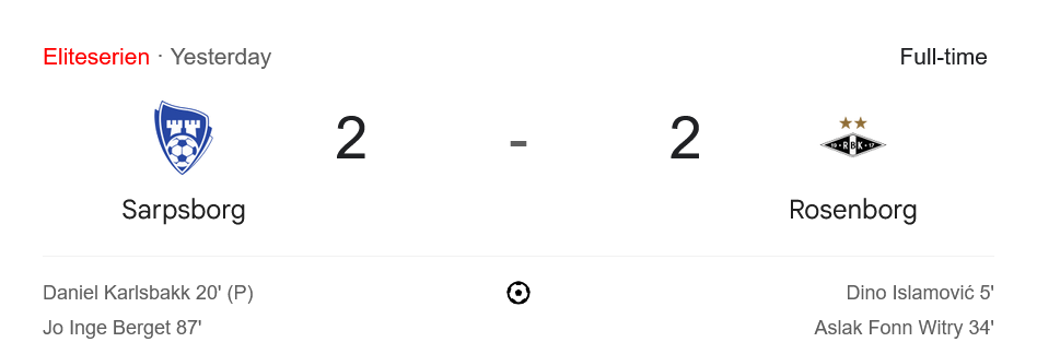 เกมดราม่าที่เต็มไปด้วยความดุดันในศึก นอร์เวย์ ทิปเปลีเก้น เมื่อคืนที่ผ่านมา ชาร์ปบอร์ก 08 เปิดบ้านไล่ตีเสมอ โรเซนบอร์ก 2-2 ได้แบบสุดระทึก โดยมีประตูสำคัญช่วงท้ายเกมจากโจ อิงเก้ แบร์เกต ช่วยให้เจ้าบ้านแบ่งแต้มได้สำเร็จ บ้านกีฬาเกาะติด ผลบอลสด แบบเรียลไทม์ พบว่านี่คือเกมที่มีทั้งจังหวะหวาดเสียว ใบเหลืองถล่มทลาย และแท็กติกสุดเข้มข้นจากทั้งสองฝั่ง