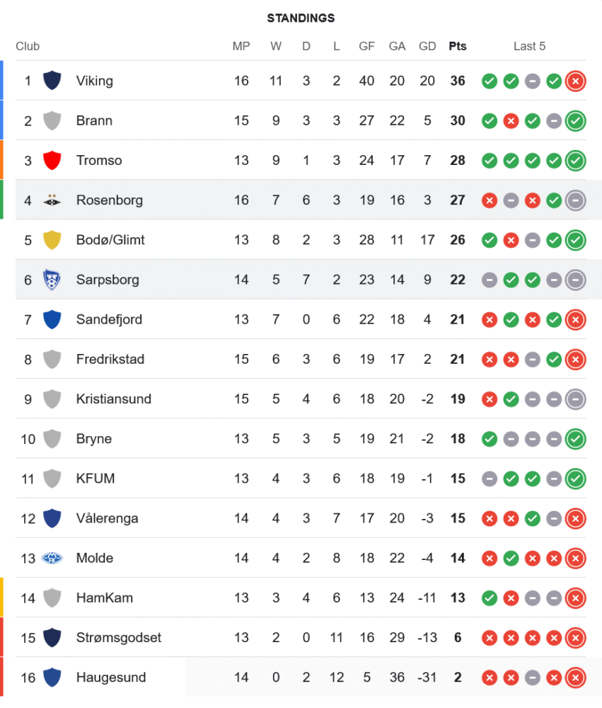 ตาม ตารางบอล โรเซนบอร์กจะเล่นยูโรปาคอนเฟอเรนซ์ลีกพบบังก้าในวันที่ 24 กรกฎาคม และกลับมาเล่นลีกกับทรอมโซวันที่ 27 ขณะที่ชาร์ปบอร์กต้องเยือนซานเดฟยอร์ดในวันที่ 26