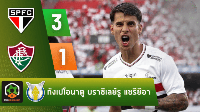 ศึกกังเปโอนาตู บราซีเลย์รู แซรียีอา เมื่อคืนที่ผ่านมา ผลบอลสด ที่สนามโมรุมบีทำเอาแฟนบอลเฮสนั่น เมื่อเจ้าถิ่น เซาเปาโล โชว์ฟอร์มสุดเข้มข้นไล่ทุบ ฟลูมิเนนเซ ไปด้วยสกอร์ 3-1 เก็บชัยชนะเป็นนัดที่ 3 ติดต่อกัน พร้อมทำคะแนนขยับไล่บี้กลุ่มหัวตารางอย่างมีลุ้นเต็มตัว