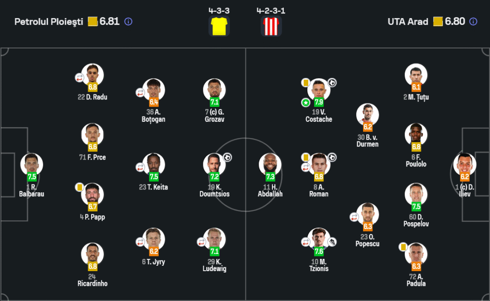 - กองกลาง: คอนสแตนตินอส ดูมต์ซิออส (68′ เอเดรียน ชิกา-โรซ่า), ไทดิเน่ เคต้า (85′ วาเลนติน เกออร์เก้), อันดราส โบโตแกน (72′ บ็อกดาน มาเรียน)
