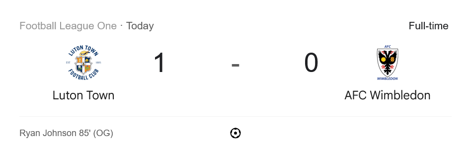 🔁 88′ ลูตันส่ง มาร์ค แมคกินเนส แทน วอลเตอร์ส / วิมเบิลดันส่ง อารอน ซาซู แทน ฮิปโพลิท