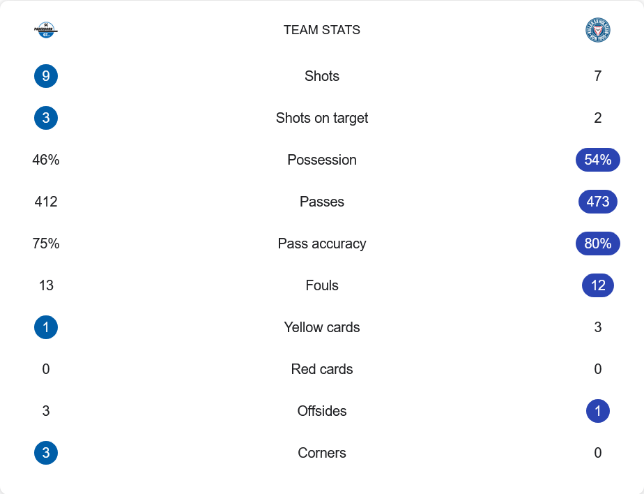 เมื่อเจาะลึกถึงแท็คติกและระบบการเล่น ต้องบอกว่าทั้งสองทีมเลือกใช้ระบบหลัง 3 ตัว แต่แนวทางการรุกมีความแตกต่าง โดย พาเดอร์บอร์น เน้นจังหวะสวนกลับเร็ว ใช้ความเร็วของแนวรุกและการเติมเกมจากวิงแบ็กที่เฉียบคม ขณะที่ โฮลสไตน์ คีล คุมเกมได้ดีกว่าด้วยการครองบอลที่ 54% และความแม่นยำในการจ่ายบอลสูงถึง 80% จากการวิเคราะห์บอลของบ้านกีฬา ชี้ว่าคีลมีความพยายามชัดเจนในการควบคุมจังหวะเกมแต่ขาดความเฉียบขาดในการจบสกอร์ ต่างจากเจ้าบ้านที่แม้จะครองบอลเพียง 46% แต่สามารถเปลี่ยนโอกาสเป็นประตูได้ถึง 2 จาก 3 ครั้งที่ยิงตรงกรอบ