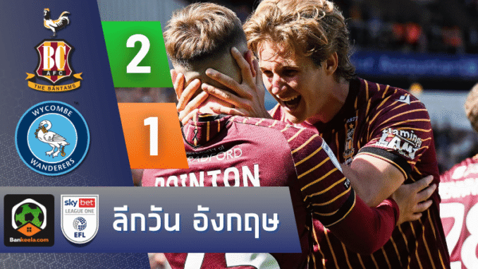 แบรดฟอร์ด ซิตี้ ประเดิมด้วย 3 แต้ม ขึ้นไปรั้งอันดับ 6 ชั่วคราวในตาราง ลีกวัน ถือเป็นการเริ่มต้นที่มั่นคงและเรียกความมั่นใจได้มาก ขณะที่ วีคอมบ์ วันเดอเรอร์ส ยังไม่มีแต้ม และรั้งอันดับ 18 ต้องเร่งเรียกฟอร์มกลับโดยเร็วเพื่อหนีจากโซนล่าง