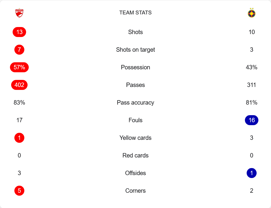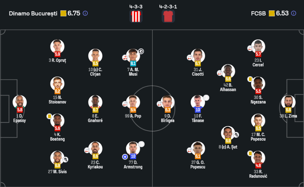 จากมุมมอง วิเคราะห์บอล เกมนี้สะท้อนว่าเป็นการดวลกันด้วยสไตล์เกมรุกล้วน ทั้งดินาโมและสเตอัวต่างเน้นสปีดเกม จังหวะจบที่เฉียบคม และการเปิดเกมจากแดนกลางแบบไม่รอช้า ดินาโมครองบอลได้ 57% ต่อบอล 402 ครั้ง และจบสกอร์ได้ถึง 4 จาก 7 ครั้งที่ยิงเข้ากรอบ แสดงถึงความเฉียบคมของแผงหน้าที่นำโดย Armstrong ขณะที่สเตอัวอาศัยบอลเร็วและการตัดเข้าด้านในเพื่อเรียกจุดโทษ ซึ่ง Tănase ทำหน้าที่ได้อย่างไร้ที่ติ แม้เกมรับทั้งสองฝั่งจะมีจุดอ่อน แต่เกมรุกก็ทดแทนได้หมดในเกมคุณภาพสูงแบบนี้