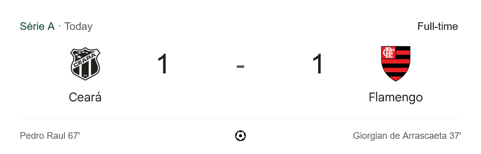 เกมเดือดบนแผ่นดินบราซิลในศึก กังเปโอนาตู บราซีเลย์รู แซรียีอา เมื่อ ซิเอร่า เปิดบ้านรับการมาเยือนของจ่าฝูงอย่าง ฟลาเมงโก และสามารถแบ่งแต้มแบบสุดมัน 1-1 ในเกมที่เจ้าบ้านสู้ด้วยหัวใจ ขณะที่ทีมเยือนครองเกมแต่จบไม่คมพอ โดย บ้านกีฬา รายงานแบบเจาะลึกทุกจังหวะ พร้อม ผลบอลสด แม่นยำเพื่อแฟนลูกหนัง