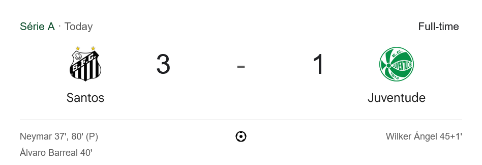 ฟอร์มระดับโลกสมศักดิ์ศรี เขาคือทุกอย่างของซานโตสในเกมนี้ ไม่เพียงทำ 2 ประตู แต่ยังมีส่วนร่วมกับจังหวะสร้างสรรค์เกมบุกทุกระยะ เคลื่อนที่ฉลาด จ่ายบอลแม่น และรับผิดชอบบทบาทผู้นำในสนามแบบไร้ที่ติ เกมนี้พิสูจน์ชัดว่าถ้าเนย์มาร์ฟิตและมั่นใจ ไม่มีแนวรับทีมใดในลีกที่หยุดเขาได้