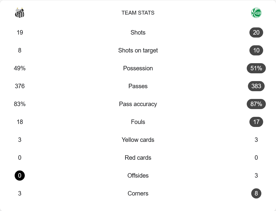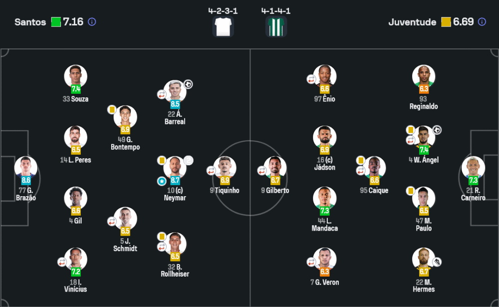 ตัวสำรองที่ลงสนาม: เอเมอร์สัน บาตายา (65’, 6.4), กาเบรียล ทาลิอารี่ (65’, 6.5), อับเนอร์ (75’, 6.3), ดาเนียล กีรัลโด้ (83’, 6.7), มาร์ลอน ซานโตส (83’, 6.5)