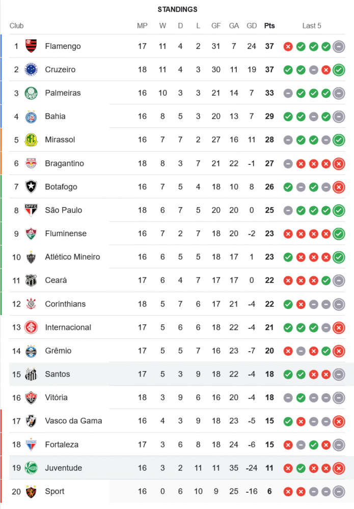 ชัยชนะของ ซานโตส ทำให้พวกเขาเก็บเพิ่มเป็น 18 แต้มจาก 17 นัด ขยับจากอันดับ 17 ขึ้นมาอยู่อันดับ 15 ของตาราง กำลังดิ้นรนหนีโซนตกชั้นอย่างจริงจัง ส่วน ยูเวนตูเด้ พ่ายแพ้เป็นเกมที่ 11 จาก 16 นัด มีเพียง 11 คะแนน รั้งอันดับรองบ๊วย (ที่ 19) เหนือแค่สปอร์ตเท่านั้น และถ้ายังหาทางกลับสู่ฟอร์มเก่งไม่ได้ เส้นทางสู่เซเรียบีกำลังเปิดกว้าง