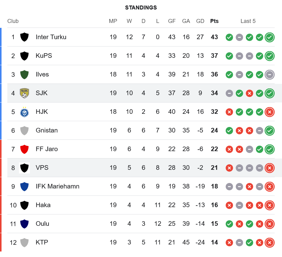 ชัยชนะนัดนี้ทำให้ SJK เก็บเพิ่มเป็น 34 คะแนน รั้งอันดับ 4 ไล่จี้ Ilves อันดับ 3 ที่มี 36 แต้ม ส่วน VPS พ่ายคาบ้านทำให้หยุดอยู่ที่ 21 คะแนน รั้งอันดับ 8 และต้องระวังการไล่กดดันจากทีมโซนล่าง