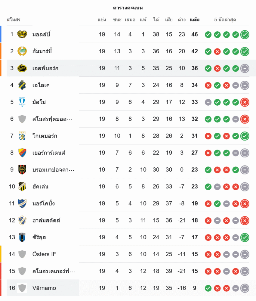 จาก : ผลบอลสด ออลสเวนส์คาน ระหว่าง เอล์ฟส์บอร์ก 2-2 ไอเอฟเค วาร์นาโม่ วันนี้ 12/8/68 – บ้านกีฬา