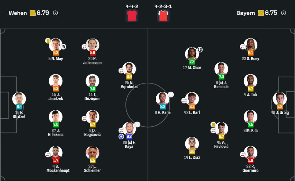 ฟาติห์ คาย่า คือผู้เล่นที่ได้รับเลือกเป็น Man of the Match คะแนนสูงถึง 9.2 ยิงสองประตูพาเวเฮนต่อกรกับบาเยิร์นอย่างสมศักดิ์ศรี แม้ทีมตกรอบแต่เขาได้ใจแฟนบอลเต็มๆ