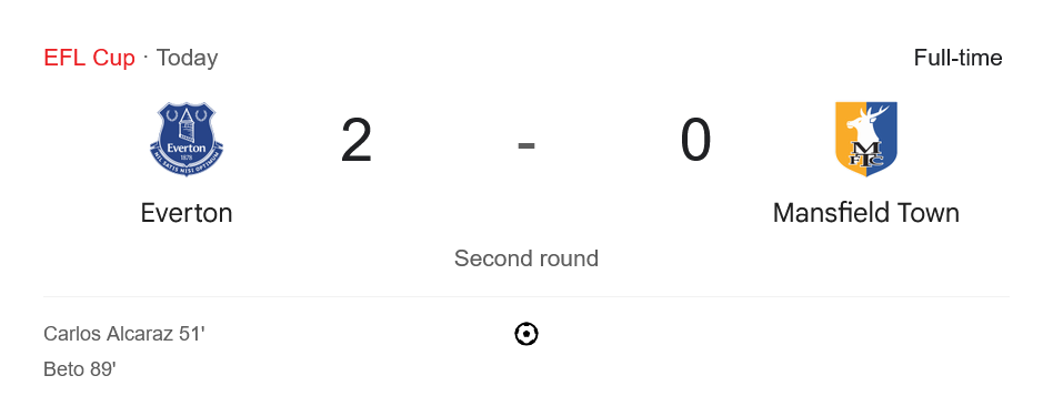 แม้เกมนี้เป็นบอลถ้วย แต่ชัยชนะ 2-0 ทำให้เอฟเวอร์ตันทะยานเข้าสู่รอบต่อไปของ อีเอฟแอลคัพ พร้อมสร้างความมั่นใจต่อเนื่อง ส่วนแมนส์ฟิลด์ต้องหันไปโฟกัสในศึกลีกวันต่อไป ซึ่งพวกเขายังมีโปรแกรมหนักรออยู่
