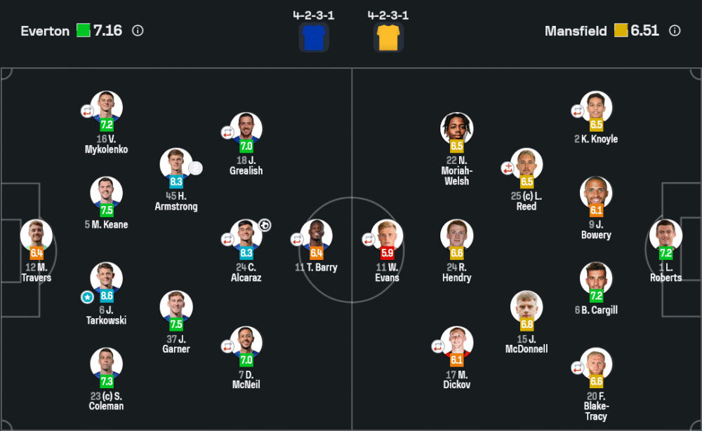 เอฟเวอร์ตันวางหมากแบบเน้นครองบอล เปิดเกมบุกจากแดนกลาง อัลการาซยืนเป็นจอมทัพสร้างสรรค์เกม ขณะที่ เบโต้ ถูกใช้เป็นทีเด็ดในครึ่งหลังซึ่งก็สร้างผลลัพธ์ทันตา ฝั่งแมนส์ฟิลด์ใช้แผนตั้งรับลึก หวังรอสวนกลับ แต่เกมรุกไม่เฉียบพอ การวิเคราะห์บอลเกมนี้ชัดเจนว่า เอฟเวอร์ตันเหนือกว่าทั้งการครองบอลและการเข้าทำ แมนส์ฟิลด์แม้พยายามสู้แต่คุณภาพต่างชั้นกัน