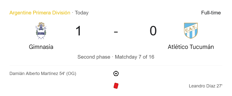 บ้านกีฬาพาเกาะติดเกม อาร์เจนติน่า พรีเมียร์ดิวิชั่น ที่สนามกิมนาเซีย ลา พลาต้า เปิดบ้านฟาดแข้งกับแอตเลติโก ทูคูแมน เกมนี้มีทั้งดราม่าใบแดงและประตูโทนสุดหืด ก่อนจบลงด้วยชัยชนะของเจ้าถิ่น 1-0 ใครตามเช็ก ผลบอลสด คู่นี้ ต้องบอกเลยว่ามันส์ตั้งแต่ต้นจนจบ
