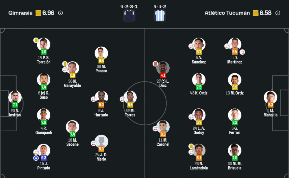 ฮวน พินตาโด แบ็กซ้ายกิมนาเซียคือพระเอกตัวจริงในเกมนี้ เรตติ้งสูงถึง 9.3 วิ่งขึ้นลงตลอด 90 นาที สร้างความแตกต่างทั้งเกมรุกและรับ แถมยังเป็นตัวบีบกดดันจนทำให้กองหลังทูคูแมนเสียสมาธิ ถือเป็นฟอร์มที่สมบูรณ์แบบที่สุดของเจ้าตัวในซีซั่นนี้