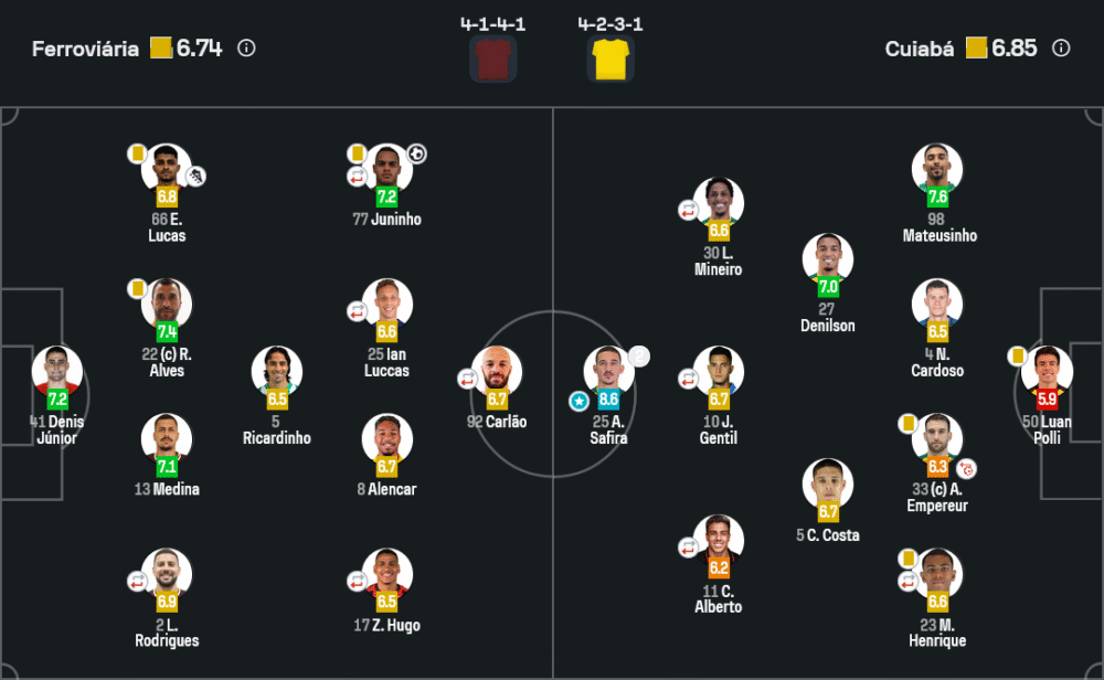 นักเตะเด่น: R. Alves 7.4 คุมแนวรับและตัดเกมได้หลายครั้ง, Denis Júnior 7.2 เซฟสำคัญ
