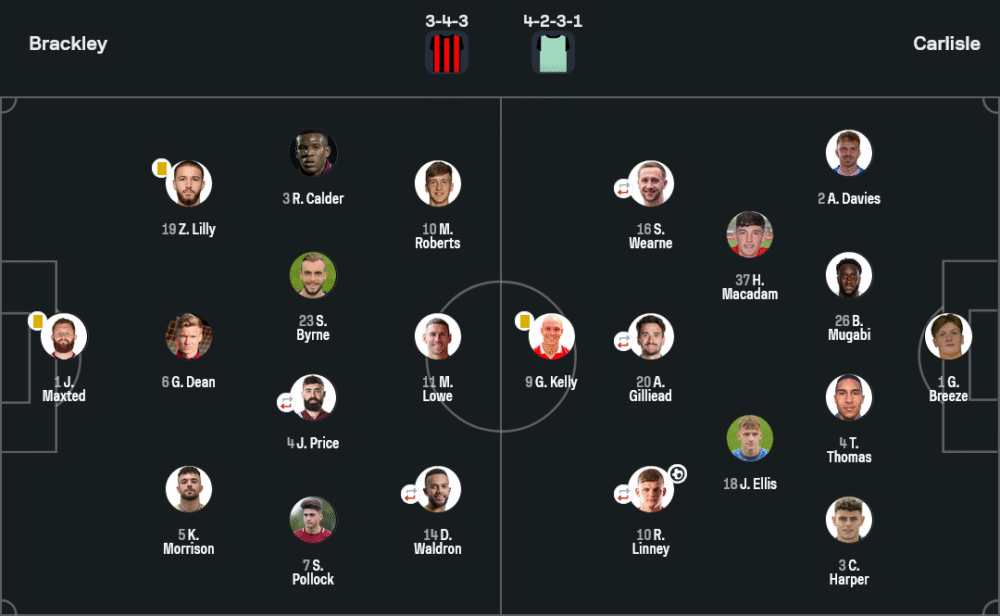 🟨 27’ G. Kelly (Brackley) โดนใบเหลือง