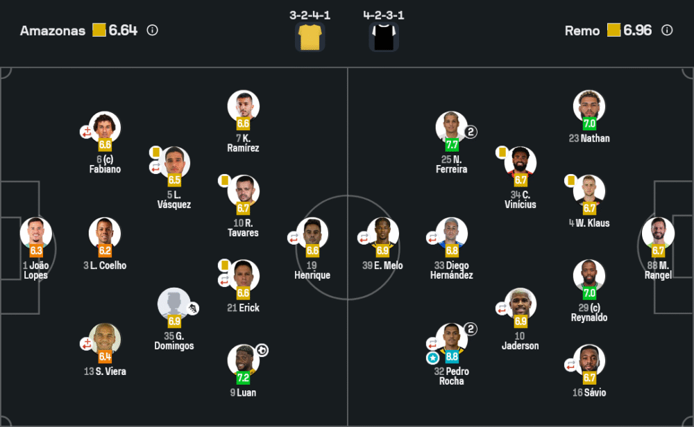 รางวัลยอดเยี่ยมเกมนี้หนีไม่พ้น เปโดร โรชา ที่ได้เรตติ้งสูงสุด 8.8 ยิง 1 จ่าย 2 มีส่วนร่วมกับทุกประตูของทีม เรียกได้ว่าเป็นตัวแสบของแนวรับอมาโซนาสอย่างแท้จริง
