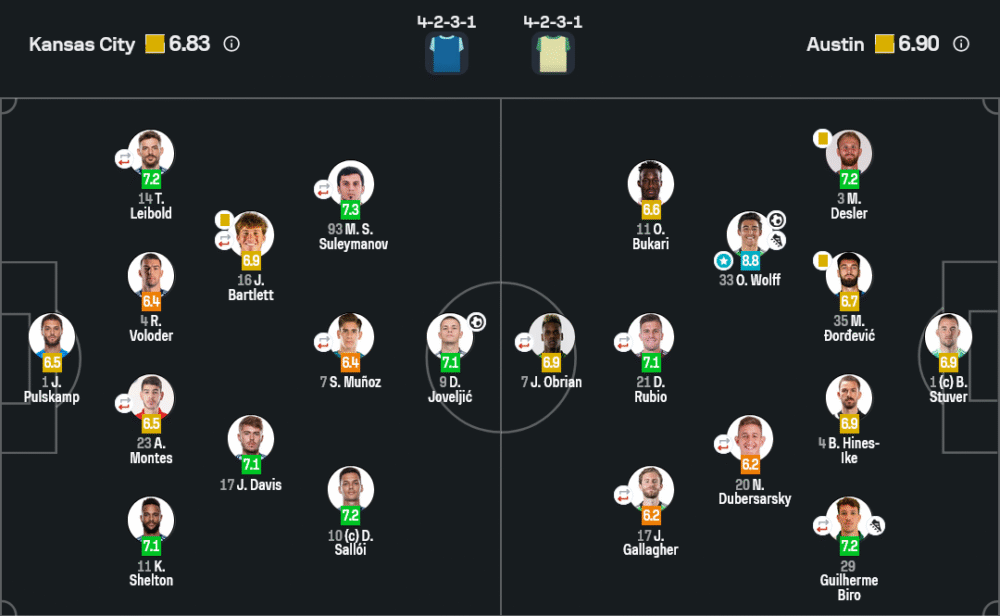 โอเว่น วูล์ฟ กองกลางตัวรุกของออสติน เอฟซี คือพระเอกของเกม ยิง 1 จ่าย 1 สร้างความแตกต่างทุกครั้งที่ได้บอล ได้คะแนนสูงถึง 8.8 และช่วยให้ทีมบุกคว้าสามแต้มได้อย่างเด็ดขาด