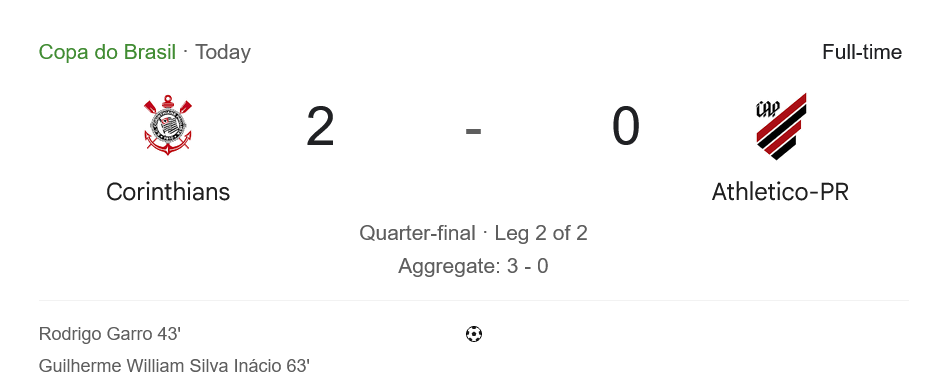 ชัยชนะ 2-0 ทำให้โครินเธี่ยนส์เข้ารอบรองชนะเลิศด้วยผลรวม 3-0 มั่นใจเต็มเปี่ยมก่อนบู๊ในรอบถัดไป ส่วนพารานาเอนเซ่ตกรอบแบบเจ็บช้ำ ต้องกลับไปโฟกัสในศึกซีรีบี