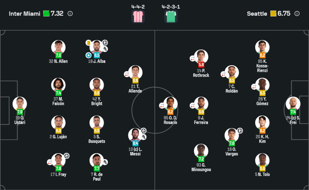 อินเตอร์ ไมอามี ใช้แผน 4-4-2 ที่ดุดัน เกมรุกอาศัยความเก๋าของเมสซีและอัลบา โดยเมสซีเป็นหัวใจในเกมรุกทั้งการสร้างสรรค์และจบสกอร์ ขณะที่อัลบาคอยเติมขึ้นมาเป็นทีเด็ดริมเส้น เกมรับเหนียวแน่นด้วยความเข้าใจเกมของบุสเก็ตส์ช่วยซ้อนอย่างเป็นระบบ ด้าน ซีแอตเทิล เล่นแผน 4-2-3-1 เน้นการป้องกันแล้วรอโต้ แต่ปัญหาคือแนวรับหลุดตำแหน่งบ่อย ทำให้โดนเจาะง่าย การบุกยังขาดความเฉียบคมแม้จะมีวาร์กัสคอยสร้างปัญหา วิเคราะห์บอล เกมนี้จึงชัดเจนว่า ไมอามีสมควรเป็นฝ่ายเก็บชัย
