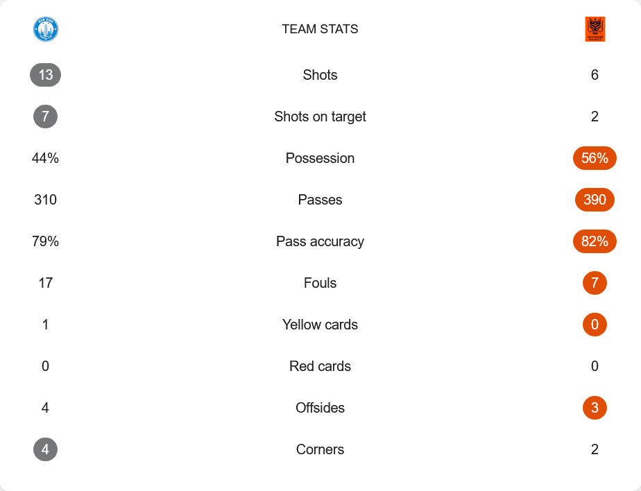 แม้นราชบุรีจะครองบอลมากกว่า 56% ต่อ 44% และจ่ายบอล 390 ต่อ 310 ครั้ง ความแม่นยำ 82% ต่อ 79% แต่ความคมเป็นของเจ้าบ้านชัดเจน นัม ดินห์ยิง 13 ครั้ง เข้ากรอบ 7 ส่วนราชบุรียิง 6 เข้ากรอบ 2 ฟาวล์เจ้าถิ่นมากกว่า 17 ต่อ 7 สะท้อนสไตล์บู๊บู๊เพื่อหยุดเกม ส่วนใบเหลืองมีเพียงหนึ่งครั้งของเจ้าบ้าน ล้ำหน้านัม ดินห์ 4 ครั้ง ราชบุรี 3 ครั้ง และเตะมุม 4 ต่อ 2 เข้าทางเจ้าถิ่นมากกว่า