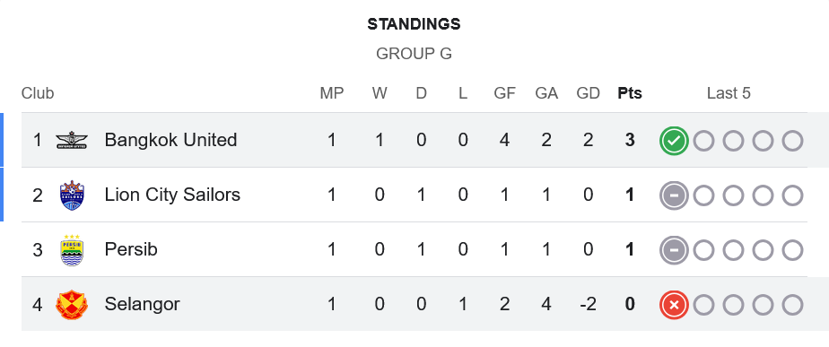 กลุ่มจีหลังนัดเปิดหัว ทรู แบงค็อก ยูไนเต็ด นำจ่าฝูงมี 3 คะแนน ประตูได้เสีย +2 ส่วน ไลออน ซิตี้ เซเลอร์ส และ เปอร์ซิบ บันดุง แบ่งแต้มกันทีมละ 1 คะแนน ขณะที่ เซลังกอร์ พีบี รั้งอันดับ 4 ยังไม่มีคะแนน ความได้เปรียบเริ่มเอียงมาทาง “แข้งเทพ” ในเส้นทางเข้ารอบ หากรักษามาตรฐานเกมเยือนแบบนี้ได้ต่อเนื่อง