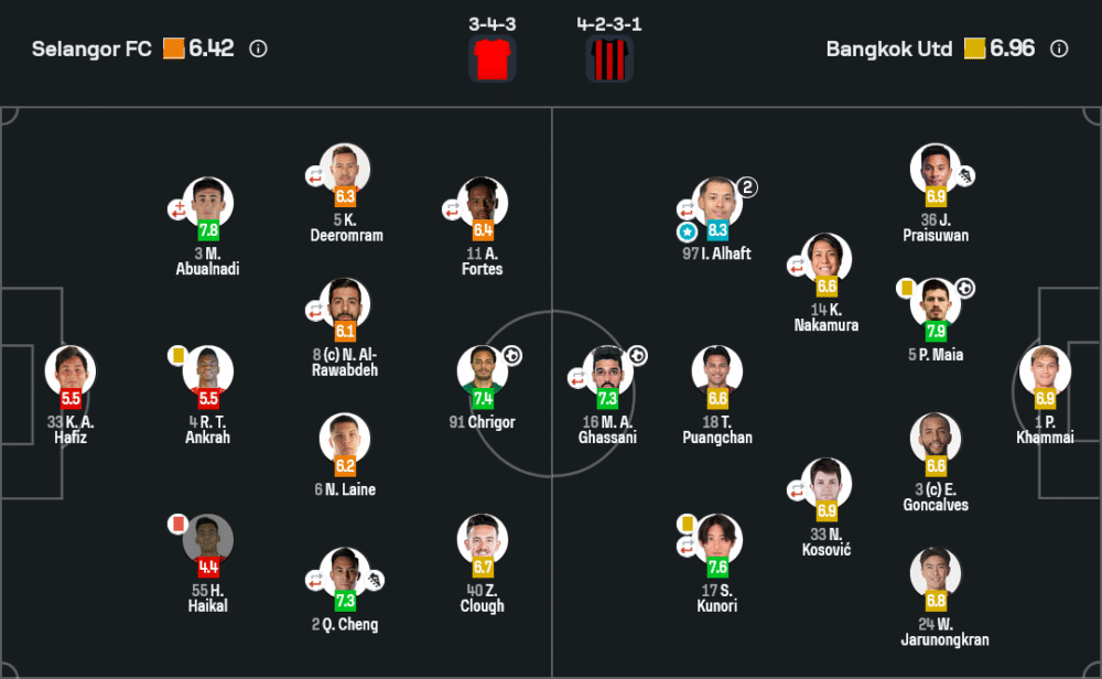 อิลิอัส อัลฮาฟต์ ปีกความเร็วสูงของทรู แบงค็อก คว้าแข้งยอดเยี่ยมของเกม เรตติ้ง 8.3 สร้างภัยคุกคามต่อเนื่องทั้งการดวลหนึ่งต่อหนึ่ง การวิ่งตัดหลังเซ็นเตอร์ และจังหวะจบสกอร์ที่เฉียบคม ทำ 2 ประตูตั้งแต่ครึ่งแรก เปิดทางให้ทีมคุมเกมง่ายขึ้น ก่อนเพื่อนร่วมทีมปิดงาน