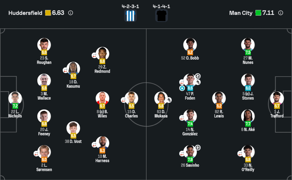 นักเตะเด่น: ฟิล โฟเด้น (8.6), จอห์น สโตนส์ (8.0), ซาวินโญ่ (7.9)