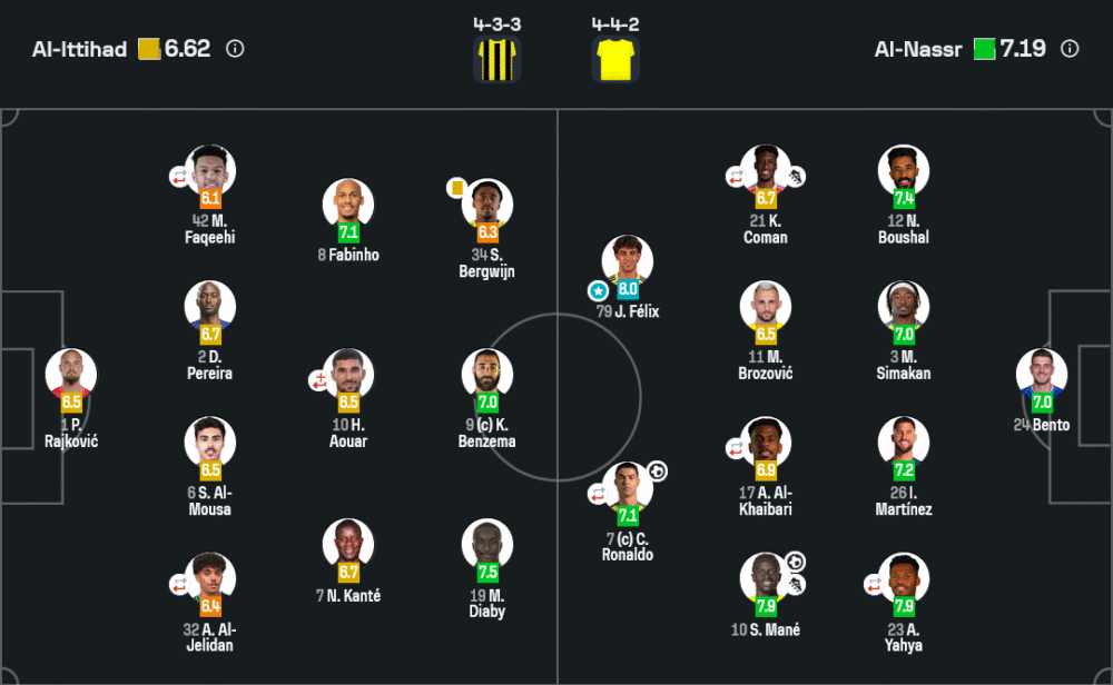 ในมุมมองของ บ้านกีฬา การ วิเคราะห์บอล เกมนี้แสดงให้เห็นความแตกต่างด้านประสิทธิภาพเกมรุก อัล อิติฮัด แม้ครองบอลมากกว่า (55%) แต่การเข้าทำมีเพียง 8 ครั้ง และตรงกรอบเพียง 2 ครั้ง ขาดความคมชัดในพื้นที่สุดท้าย ขณะที่อันนัศร์เล่นอย่างมีวินัย ใช้แผน 4-4-2 รับแน่นรอโต้กลับ สร้างโอกาสได้ถึง 19 ครั้ง และยิงตรงกรอบ 3 ครั้ง ซึ่งเปลี่ยนเป็น 2 ประตูสำคัญ เกมรับของอันนัศร์เหนียวแน่น โดยคู่เซ็นเตอร์ มาร์ติเนซ และ ซิมาก็อง ช่วยป้องกันบอลกลางอากาศและลูกทะลุช่องได้อย่างยอดเยี่ยม