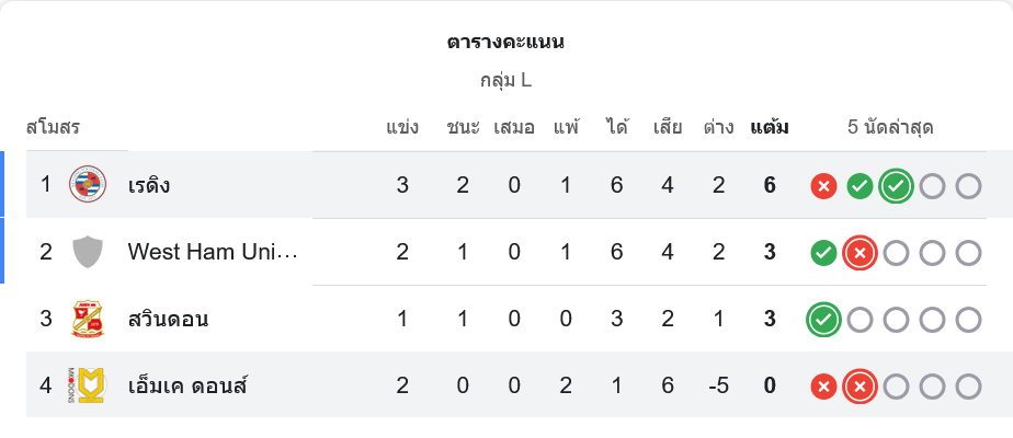 เช็กจาก ตารางบอล เร้ดดิ้งมีคิว ลีก วัน บุกเยือน Exeter วันที่ 11/10/25 เวลา 21:00 ต่อด้วยเยือน Cardiff วันที่ 18/10/25 เวลา 21:00 ด้านเอ็มเค ดอนส์ใน ลีก ทู ออกไปเยือน Bristol Rovers วันที่ 11/10/25 เวลา 21:00 และเปิดบ้านพบ Crewe วันที่ 18/10/25 เวลา 21:00 โปรแกรมแน่น แรงใจและความคมจะชี้ทางอนาคต