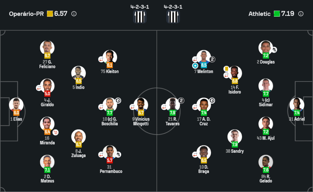 โอเปราริโอ (4-2-3-1): เอลิอัส (GK), มาเตอุส, มิรานดา, จิรัลโด, อินดิโอ, ซูลัวก้า, บอสชิเลีย (C), มิงกอตติ, เพอร์นัมบูโก, ไคลตอน, เฟลิซิอาโน