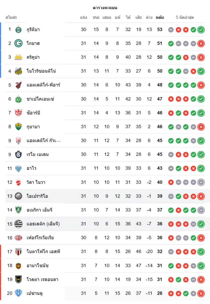 จาก : ผลบอลสด คัมปิโอนาโต บราซิเลียโร ซีรีบี ระหว่าง โอเปราริโอ แฟร์โรวิอาริโอ พีอาร์ 1-4 แอธเลติก เอ็มจี วันนี้ 9/10/68 – บ้านกีฬา