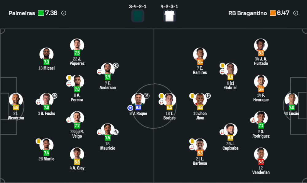 - 🔁 78′ พัลไมรัส รัวสามเปลี่ยน: มาร์ติเนซ แทน เปเรย์ร่า, โฆเซ่ โลเปซ แทน มาอูริซิโอ, รามอน โซซา แทน อันเดอร์สัน