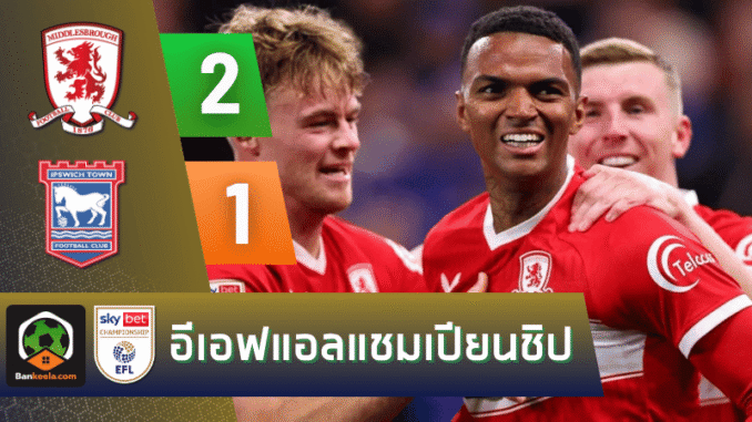บ้านผลบอล สรุปหลังเกม แชมเปียนชิป เดือดสะเทือนจ่าฝูง! มิดเดิลสโบรห์เชือดอิปสวิช 2-1 คว้า 3 แต้มทอง รั้งอันดับ 1 ตาราง
