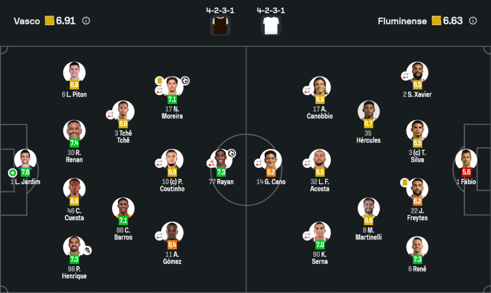 ทั้งสองทีมเลือกใช้ระบบ 4-2-3-1 แต่สไตล์การเล่นแตกต่างกันชัดเจน วาสโก ดา กามา เน้นบีบเกมเร็วและสวนกลับที่เฉียบคม โดยใช้ความสามารถเฉพาะตัวของ Rayan และ Moreira สร้างแรงกดดันตลอดเกม ส่วน ฟลูมิเนนเซ พยายามครองบอลและต่อเกมจากแดนกลาง ซึ่งเห็นได้จากการจ่ายบอลมากกว่า แต่ปัญหาคือความเฉียบคมในพื้นที่สุดท้ายและการป้องกันจังหวะสวนกลับไม่ดีพอ